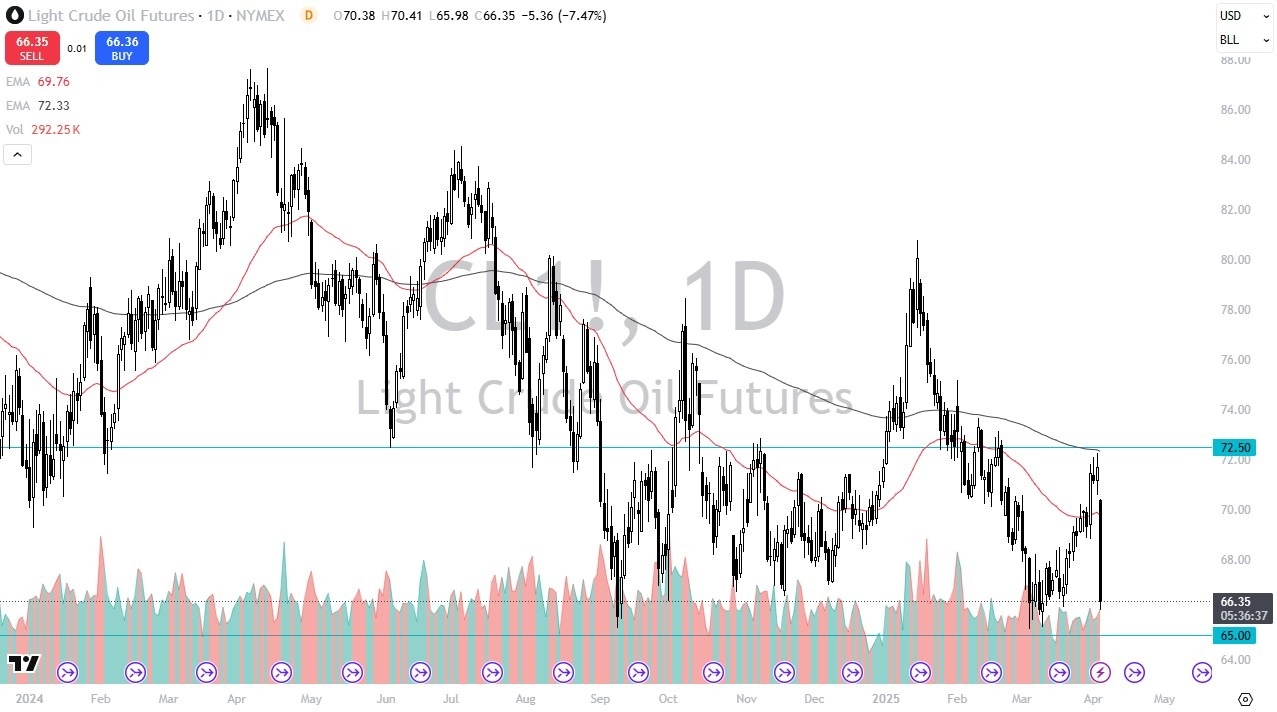 - The light sweet crude oil futures market has been absolutely crushed during trading on Thursday as the tariffs were announced by the United States.